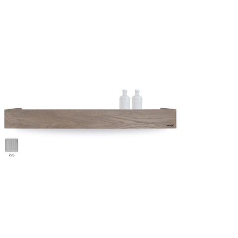 Looox Wood collection étagère BoX 90cm avec plaque de fond acier inoxydable brossé chêne acier inoxydable brossé