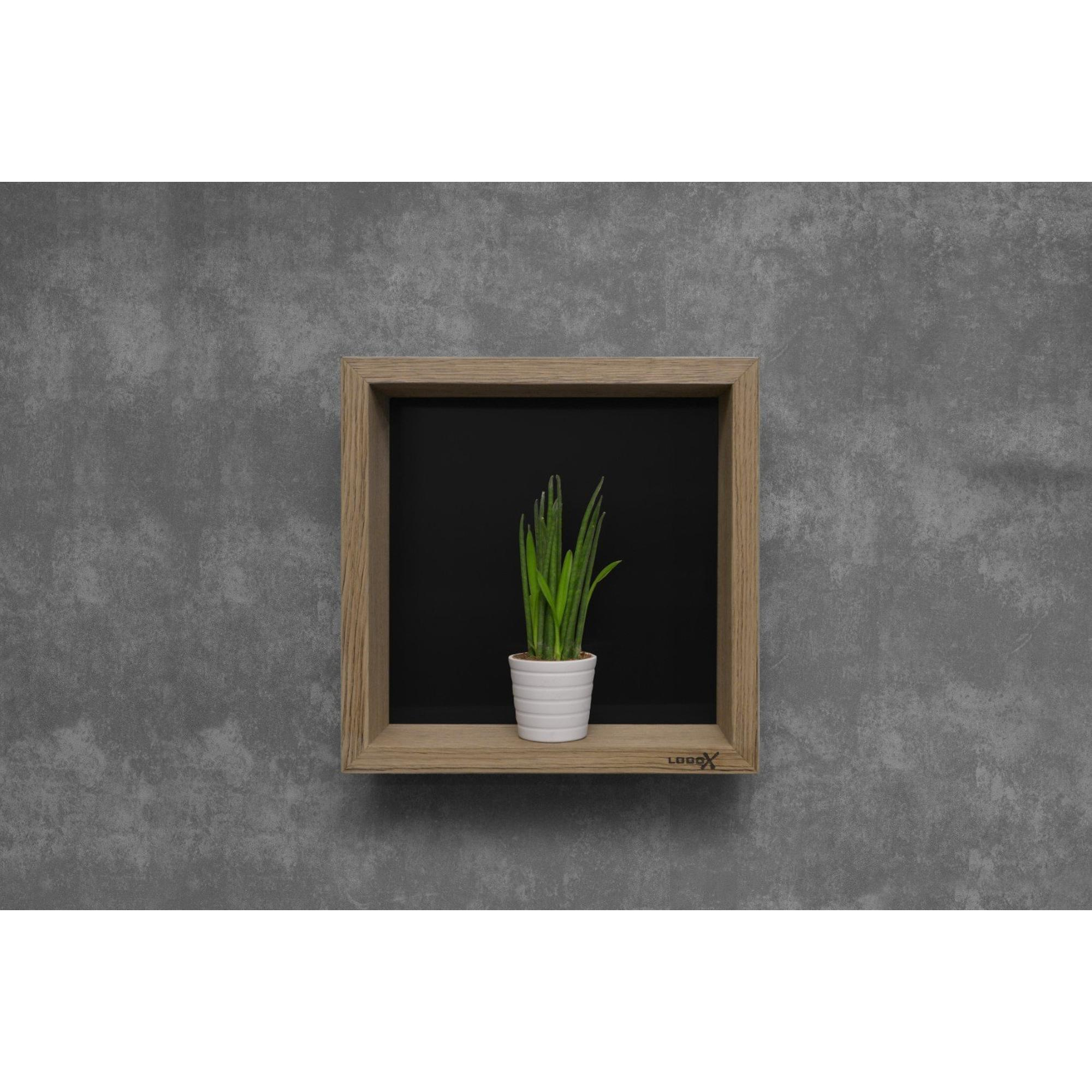 Looox Wood collection Boîte murale 30x30cm avec plaque arrière noir mat chêne noir mat