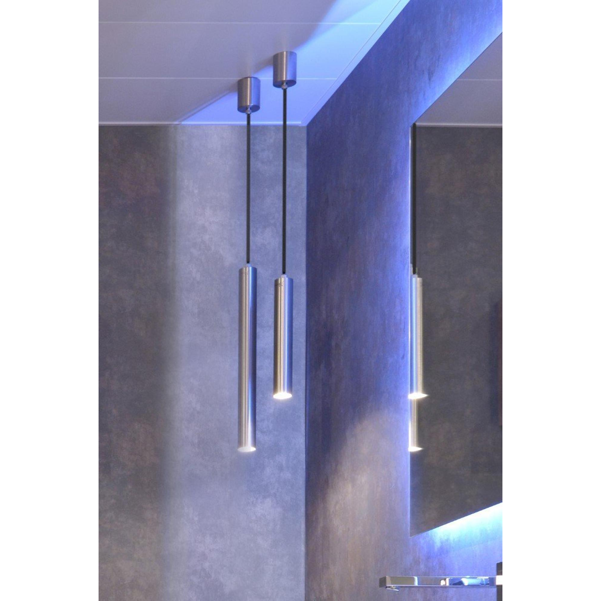 La suspension Looox Light collection dégage de l'élégance dans chaque salle de bain. Avec sa forme élancée et sa finition raffinée, cette suspension ajoute une touche de luxe à l'espace. Le matériau en inox brossé confère une apparence intemporelle et s'harmonise parfaitement avec divers styles d'intérieur. Que ce soit au-dessus du lavabo ou dans la douche, cette suspension crée une ambiance chaleureuse et transforme la salle de bain en une oasis de calme et de beauté.