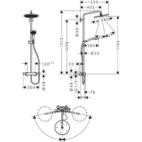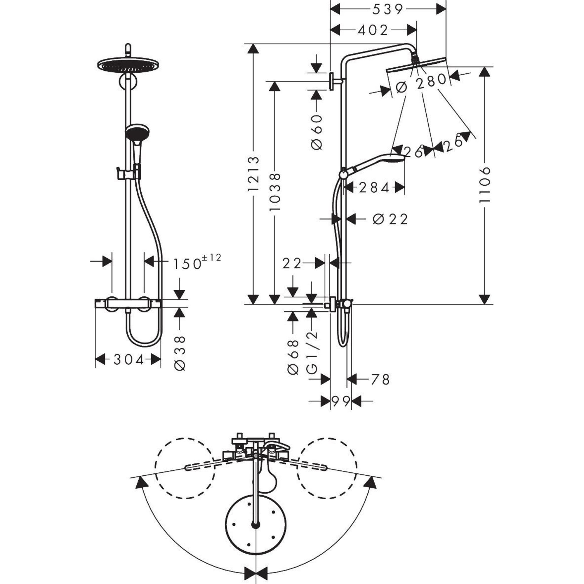 Hansgrohe Croma select s 280 showerpipe avec thermostat chrome