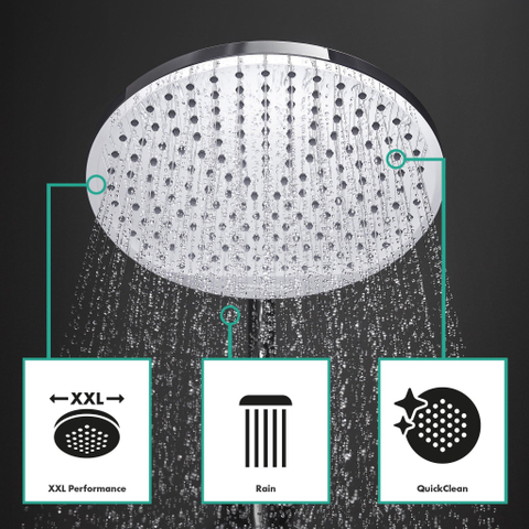 - Pomme de tête de 240 mm avec jet pluie puissant (max. 16 l/min à 3 bar)