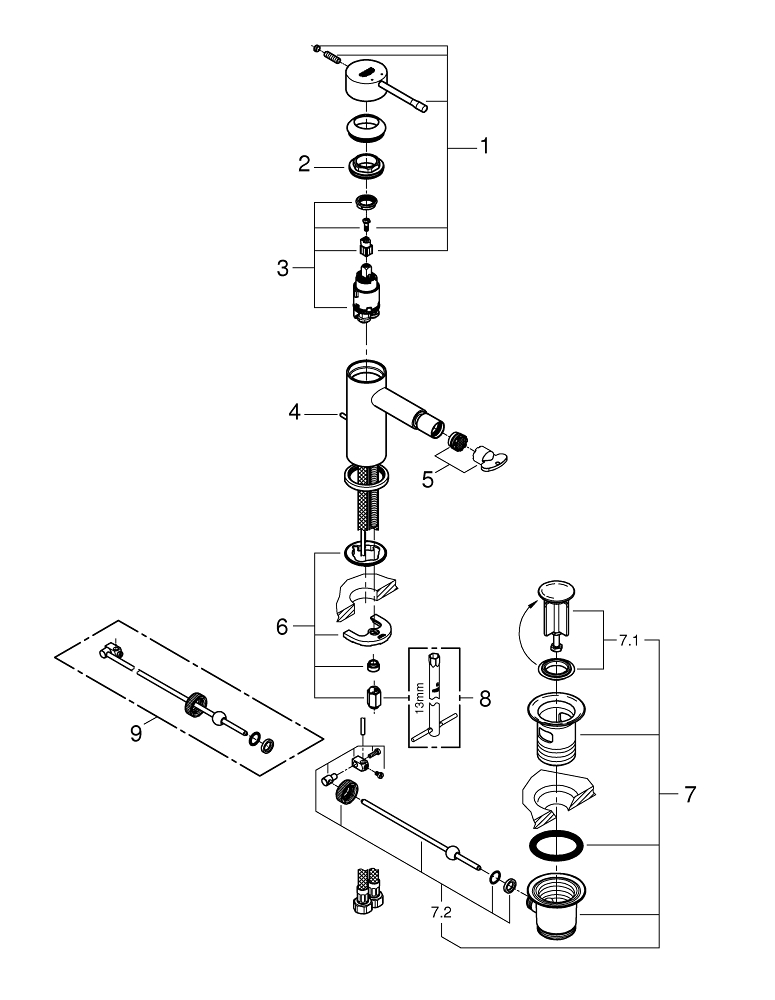 GROHE Essence new s taille robinet de bidet avec bonde super acier