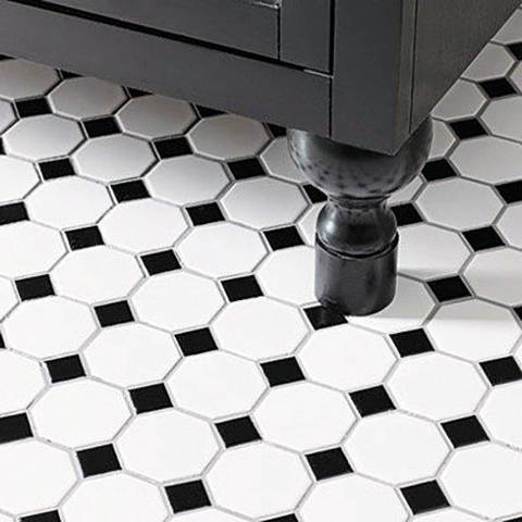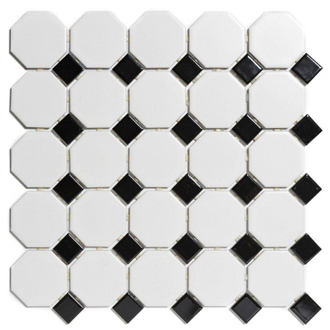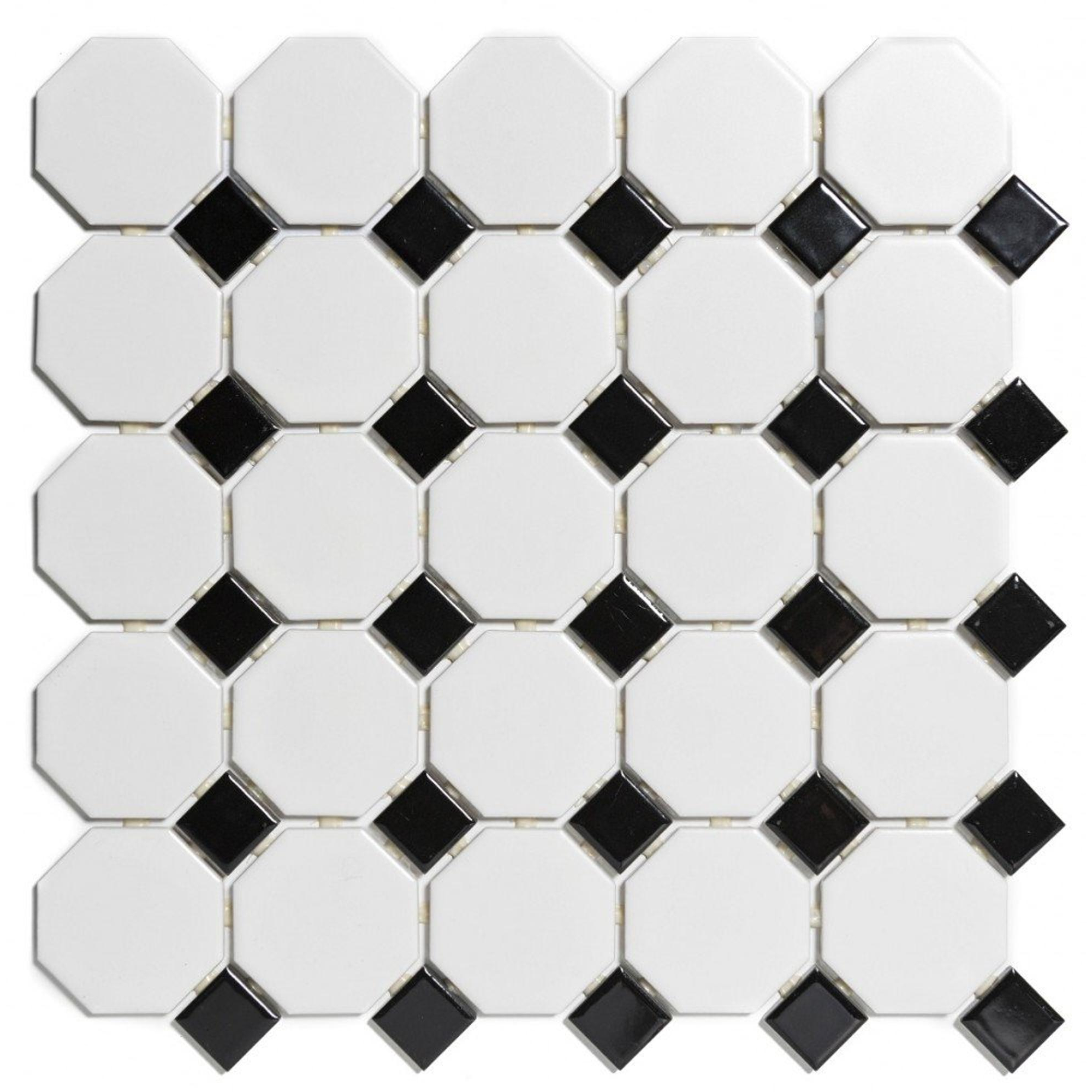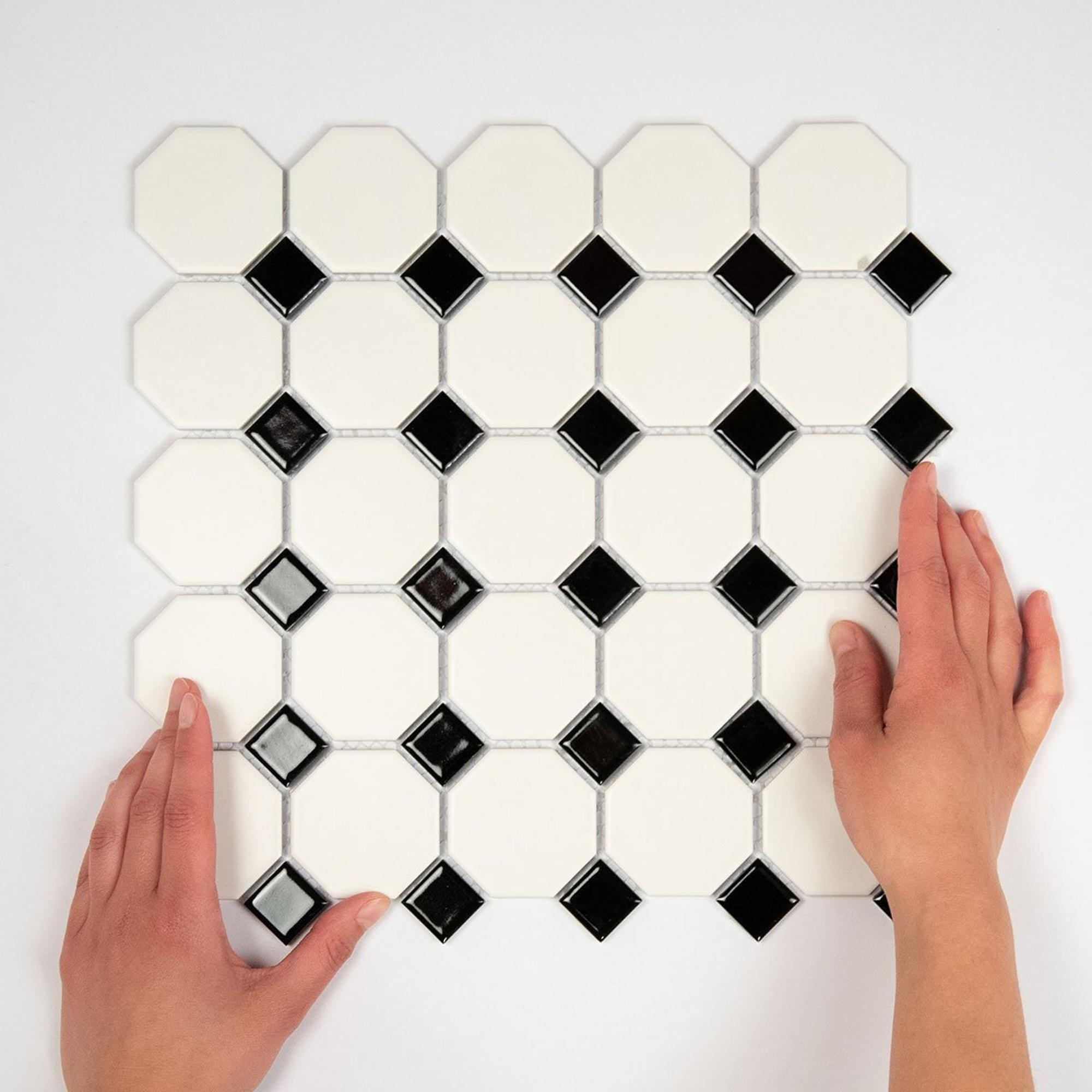 La Mosaic Factory Paris carreau de mosaïque - 29.5x29.5cm - carrelage mural et de sol - Octogonal - Porcelaine Blanc et Noir mat/brillant