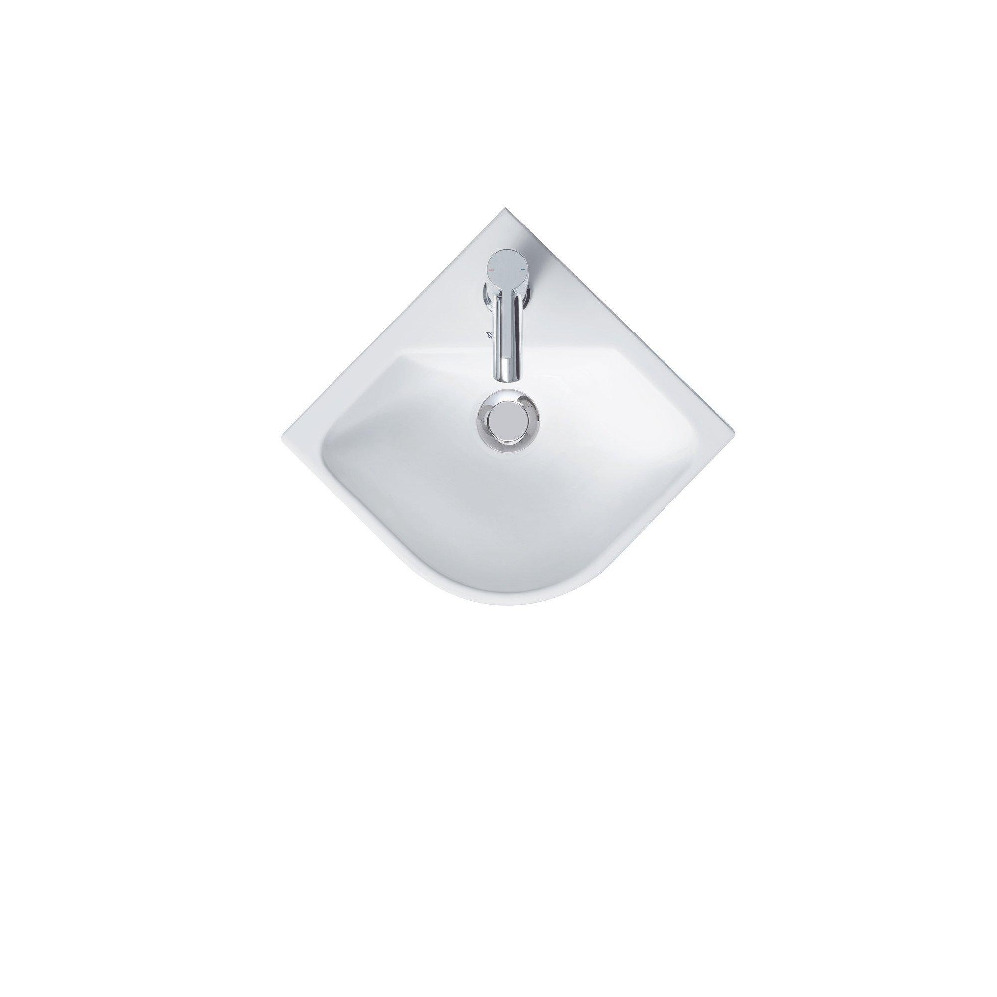 - Modèle d’angle compact d’environ 43x38 cm : idéal pour petites salles de bains et toilettes.