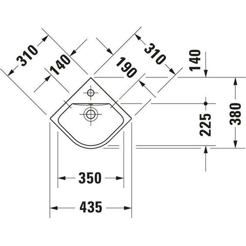 Duravit Me by starck lave-mains d’angle 43x38cm 1 trou de robinet avec trop-plein blanc