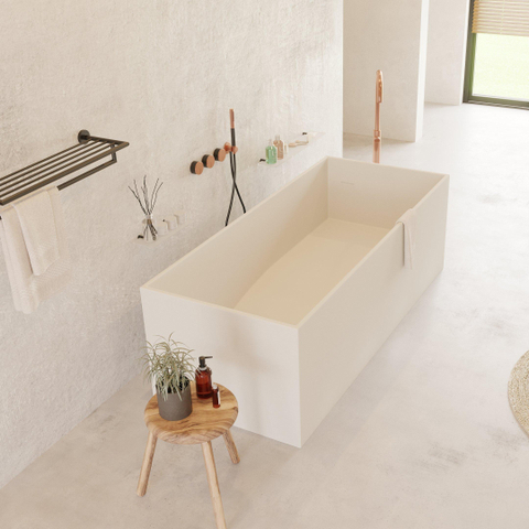 Avec cette baignoire autoportante, vous faites entrer chez vous un véritable accroche-regard qui s’intègre parfaitement dans une salle de bains moderne et minimaliste. La forme rectangulaire épurée et l’aspect mat et velouté créent une atmosphère calme et luxueuse dans laquelle vous pouvez vous détendre complètement après une longue journée. Grâce à la généreuse zone de couchage, cette baignoire est idéale pour ceux qui aiment prendre un bain prolongé, sans pour autant perdre inutilement beaucoup d’espace dans la salle de bains. Le format de 170x72 cm la rend adaptée aussi bien aux salles de bains de taille moyenne qu’aux pièces plus spacieuses, par exemple en combinaison avec une douche à l’italienne ou comme objet solitaire au centre de la pièce. Grâce au matériau solid surface de haute qualité, la surface est agréablement chaude au toucher, l’entretien est simple et la couleur blanche reste bien lumineuse. Si vous recherchez une baignoire qui ne soit pas seulement esthétique, mais également pratique, durable et hygiénique à l’usage quotidien, c’est un choix particulièrement judicieux.