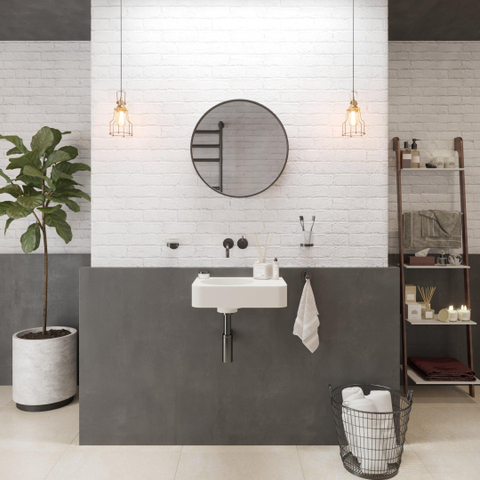 La couleur blanc mat confère à ce lave-mains une apparence calme et luxueuse qui convient parfaitement aux salles de bains modernes, scandinaves et minimalistes. La surface douce et mate évite les reflets gênants et se marie à merveille avec des robinets et accessoires noirs, chromés ou brossés. Vous pouvez ainsi définir précisément le style de vos WC ou de votre salle de bains : d’un noir et blanc épuré à une ambiance chaleureuse avec des tons boisés. Le design intemporel garantit en outre que ce lave-mains s’intègrera sans effort dans votre nouveau projet lors d’un futur relooking.