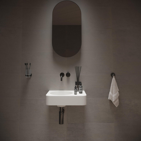 Avec une dimension de 45x33x14 cm, ce lave-mains offre juste assez d’espace pour se laver les mains confortablement, sans dépasser ni gêner le passage. La forme rectangulaire s’adapte parfaitement aux murs droits et aux espaces étroits, ce qui vous permet de tirer le meilleur parti de vos WC ou de votre petite salle de bains. Comme aucun trou de robinet n’est pré-percé, vous pouvez opter pour un robinet mural ou encastré qui s’accorde parfaitement avec votre style et votre agencement. Vous créez ainsi une apparence calme et aérée et gardez le plan du lave-mains libre de toute interruption inutile.