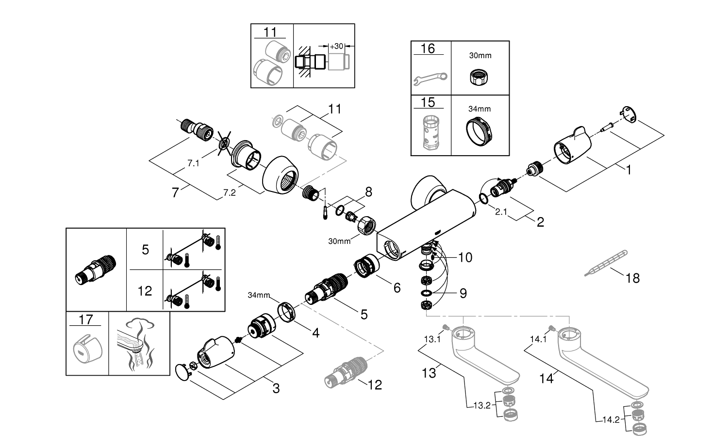 GROHE Grohtherm Special Mitigeur de douche thermostatique multifonctionnel avec raccords chrome