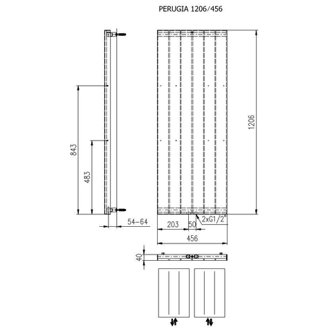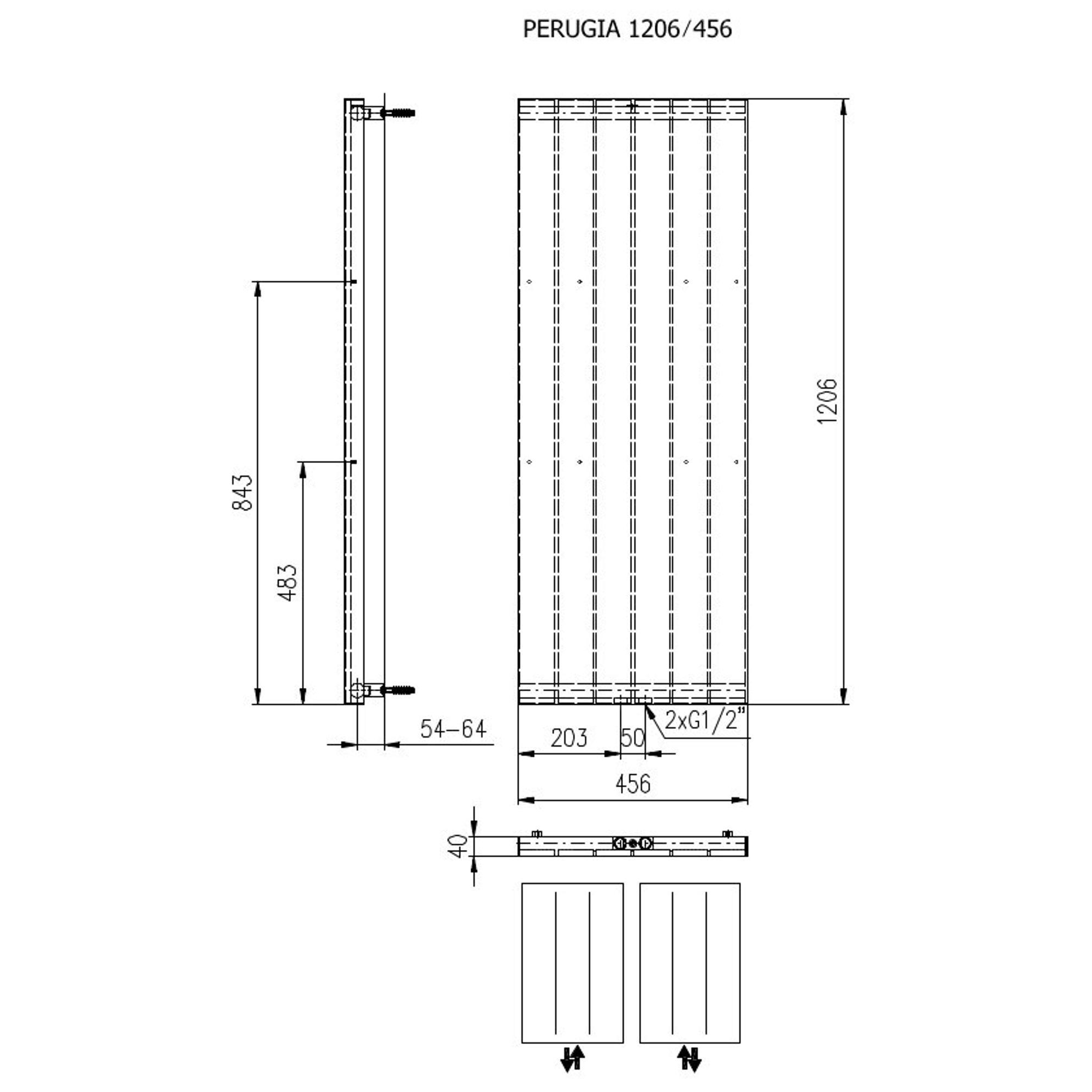 Plieger Perugia radiateur design vertical raccordement central 1206x456mm 549W blanc