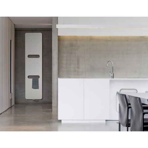 Ultra-fin, agréablement chaud et une caresse pour les yeux. Le nouveau Vasco Oni repousse les limites du design des radiateurs. Dans la plaque frontale en aluminium ultra-mince avec des découpes porte-serviettes en option, est intégré un tube de chauffage en cuivre avec un contenu d'eau minime. De ce fait, ce radiateur plat « flottant » n'est pas seulement magnifique à regarder, mais aussi extrêmement efficace et économe en énergie. Idéal en combinaison avec des systèmes à basse température.