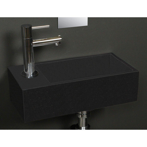 Ce lave-mains compact est un choix judicieux si vous souhaitez tirer le maximum d'un petit espace WC ou d'une salle de bains compacte. Grâce à ses dimensions étroites, il s'intègre facilement dans un coin ou le long d'un mur court, tout en vous permettant de vous laver confortablement les mains sans éclaboussures. Les lignes épurées et la cuve profonde assurent une apparence calme et ordonnée, idéale si vous aimez un style moderne et minimaliste. La couleur foncée apporte immédiatement une touche de luxe et permet de créer facilement un WC au style brut ou hôtelier, surtout en combinaison avec de beaux carrelages et un robinet assorti. Si vous recherchez une solution pratique et gain de place qui sera encore d'actualité dans quelques années, ce type de lave-mains répond parfaitement à vos attentes.