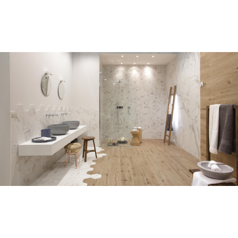 Le dessin et les nuances de couleur de ce carrelage de sol aspect bois sont soigneusement conçus pour se rapprocher du bois véritable, mais sans la sensibilité aux rayures, taches ou décoloration. La couleur Nocciola est une teinte bois moderne et chaleureuse qui se combine facilement avec des produits sanitaires blancs, des robinets noirs ou au contraire de doux tons terre. Grâce au format allongé de 30x120 cm, vous pouvez jouer avec des motifs de pose tels que chevrons, pose aléatoire ou pose droite, afin que votre sol obtienne exactement l’ambiance que vous avez en tête. La finition mate évite un effet brillant et offre une base calme et naturelle pour le reste de votre intérieur.Confortable et pratique au quotidien