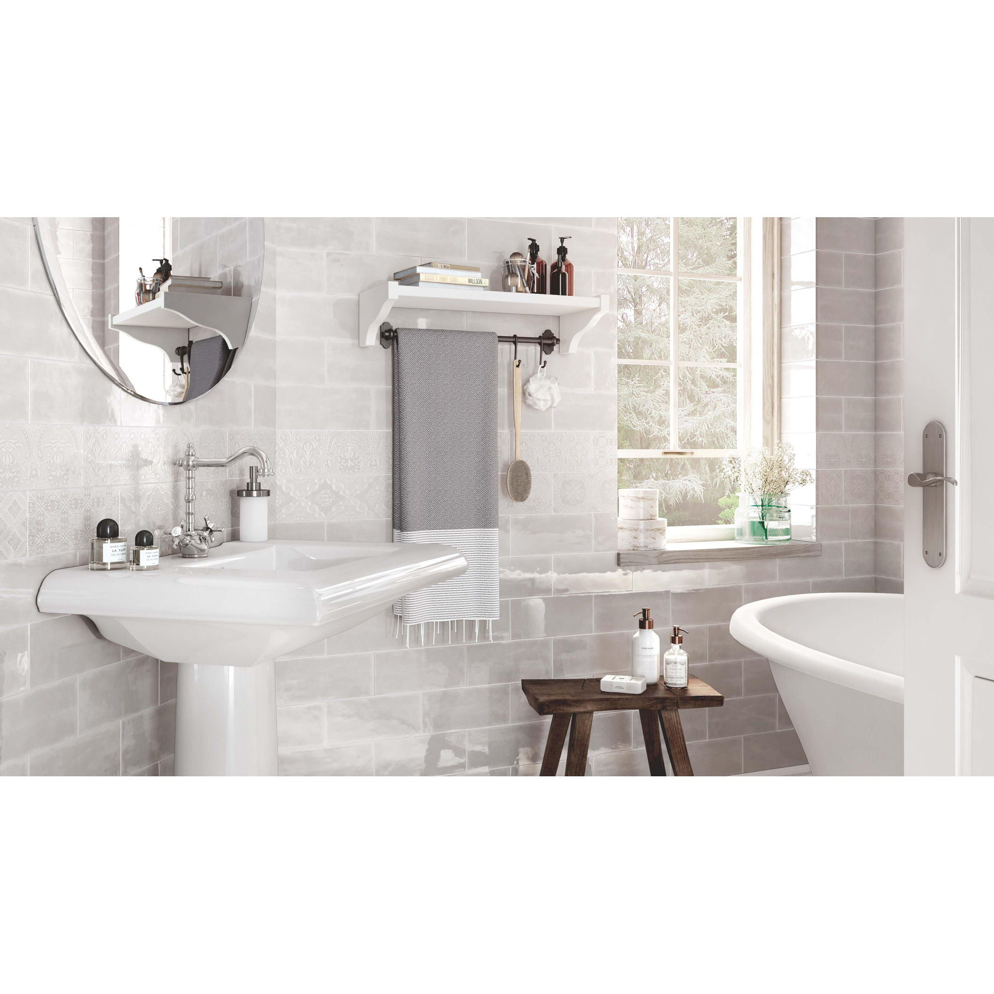 La douce couleur Tender Gray constitue une base intemporelle et polyvalente pour votre intérieur. La finition brillante apporte juste ce petit plus de luxe au mur, sans être tapageuse. Vous pouvez ainsi combiner le carrelage avec des tons bois chauds, des robinets noirs mats ou au contraire avec du chrome et de la céramique blanche, en fonction de l’ambiance que vous souhaitez créer. Dans une petite salle de bains, la brillance apporte davantage de lumière et de sensation d’espace, tandis que dans une pièce plus grande, elle peut créer une atmosphère chic et sereine digne d’un hôtel. Comme la couleur est neutre, votre salle de bains restera actuelle pendant des années et vous pourrez facilement changer les accessoires et les meubles sans devoir modifier les murs.