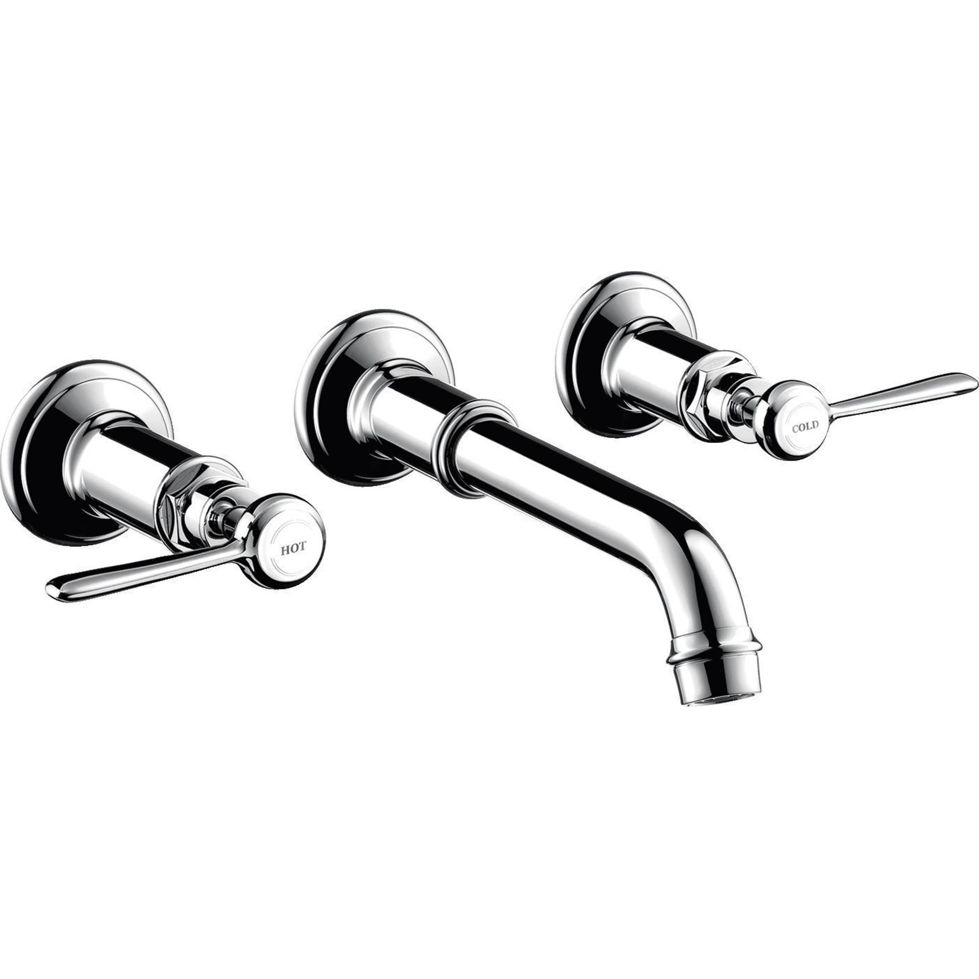 - Robinet mural classique à deux poignées, idéal pour les salles de bains intemporelles et de style campagne