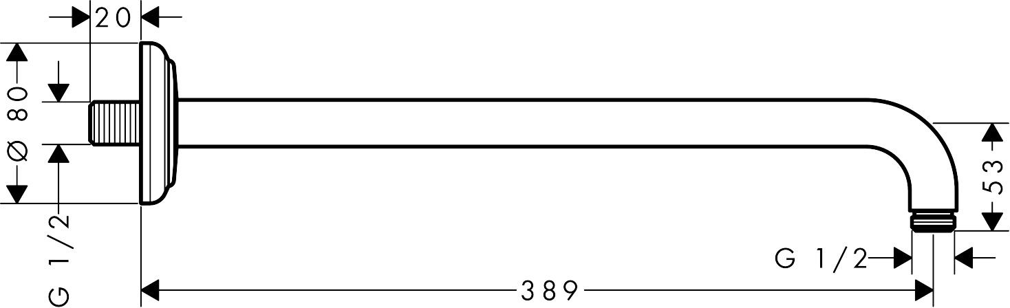 AXOR Classic Bras de douche au mur g 1/2x38.9 90°cm chromé