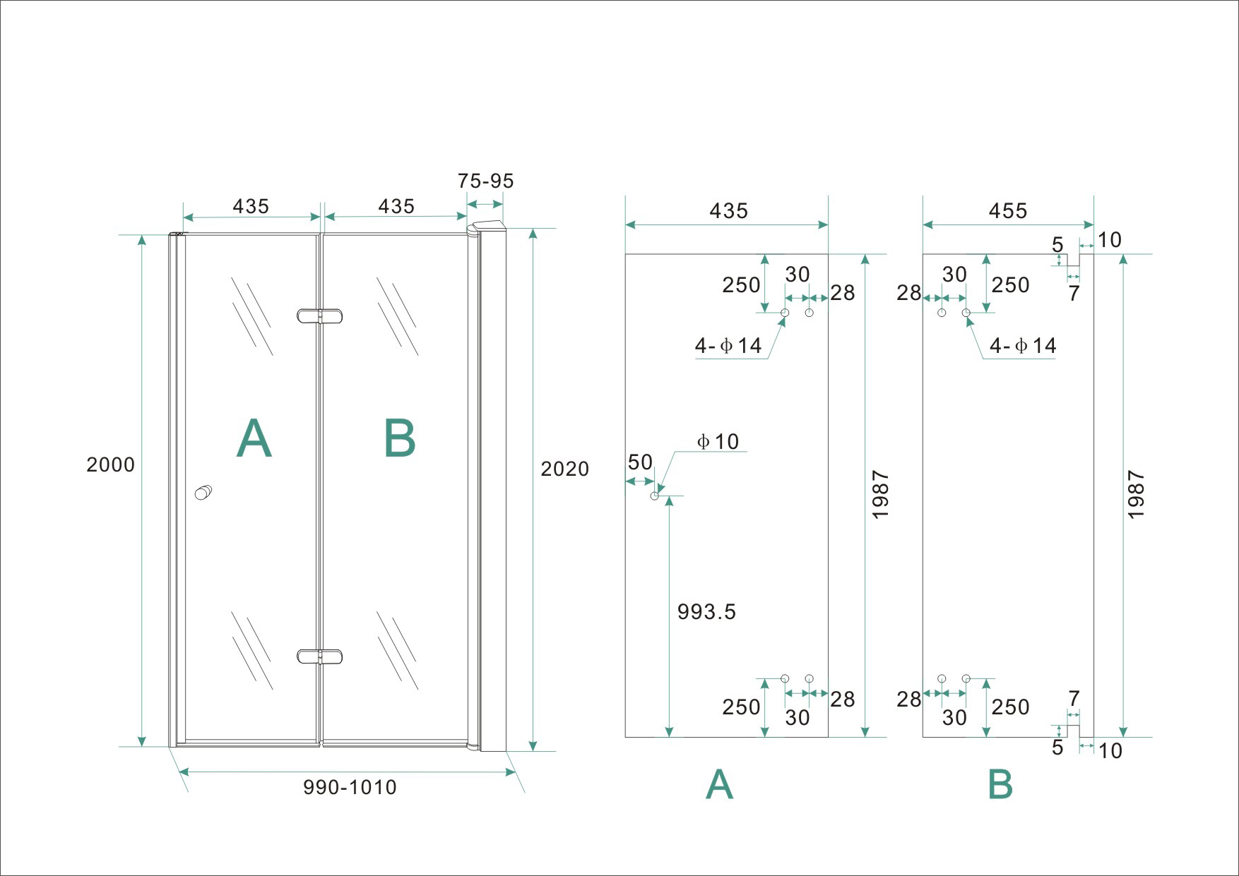 - Dimensions : 1000 x 2000 mm (largeur x hauteur), adapté aux largeurs de niche 99-101 cm