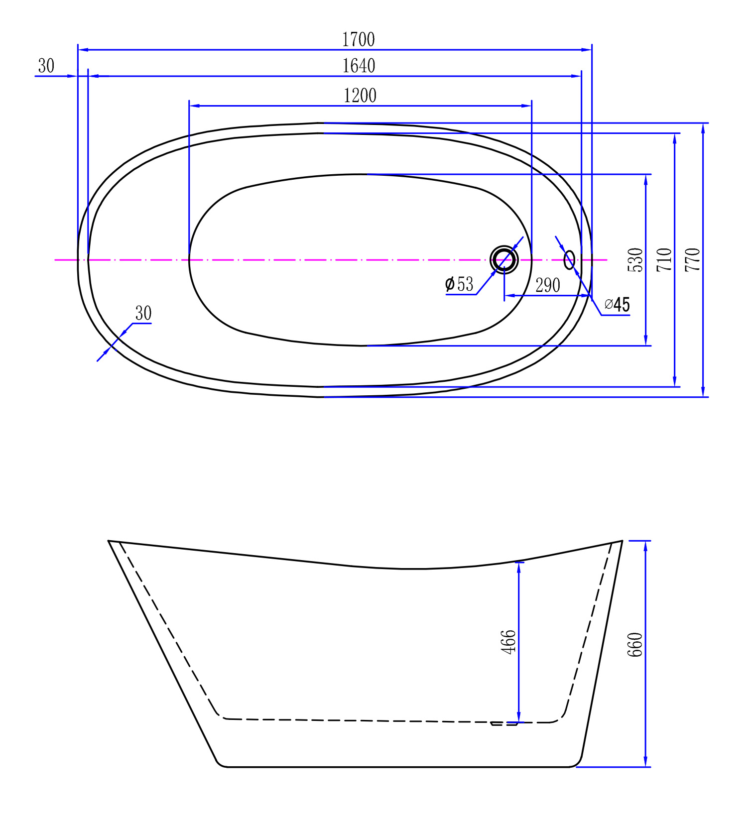 Cette baignoire îlot a été conçue en priorité pour votre détente. La forme trapézoïdale assure une position ergonomique allongée, soutenant parfaitement votre corps pendant le bain. Avec une capacité de 300 litres, vous pouvez profiter d’une grande quantité d’eau, contribuant à une expérience de bain luxueuse. La hauteur de 66 cm rend l’entrée confortable sans avoir à se pencher, ce qui est particulièrement apprécié par les personnes attachées à la facilité d’utilisation. De plus, la baignoire est équipée d’une bonde chromée et d’un trop-plein rond, qui sont non seulement fonctionnels mais apportent aussi une touche subtile et élégante.