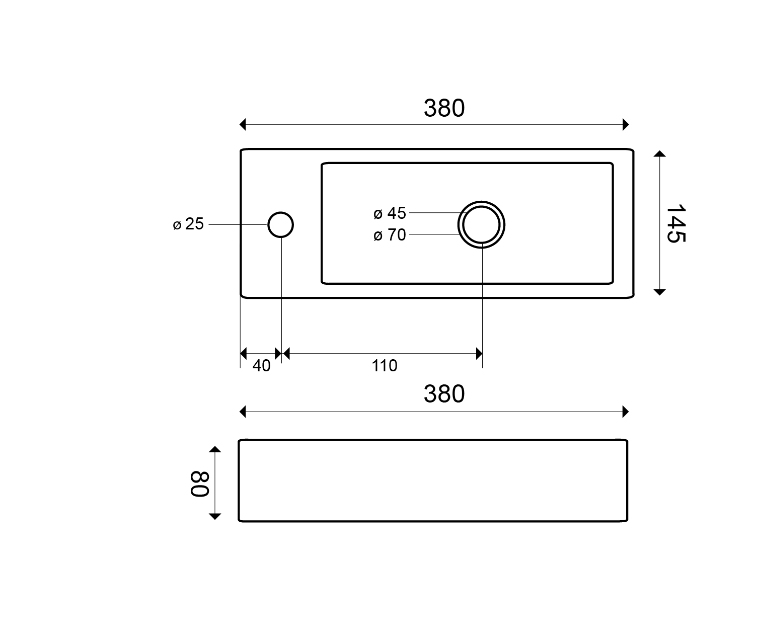 Avec une profondeur de seulement 14 cm et une largeur de 38 cm, ce lavabo est spécialement conçu pour les endroits où l'espace est limité. Cela le rend particulièrement adapté aux toilettes étroites ou aux petites salles de bains où vous souhaitez tout de même installer un lavabo fonctionnel. Le design épuré et rectangulaire garantit qu'il est non seulement pratique, mais aussi visuellement apaisant. Vous optimisez ainsi chaque centimètre sans que l'espace ne paraisse étouffant.Céramique de haute qualité avec finition brillante