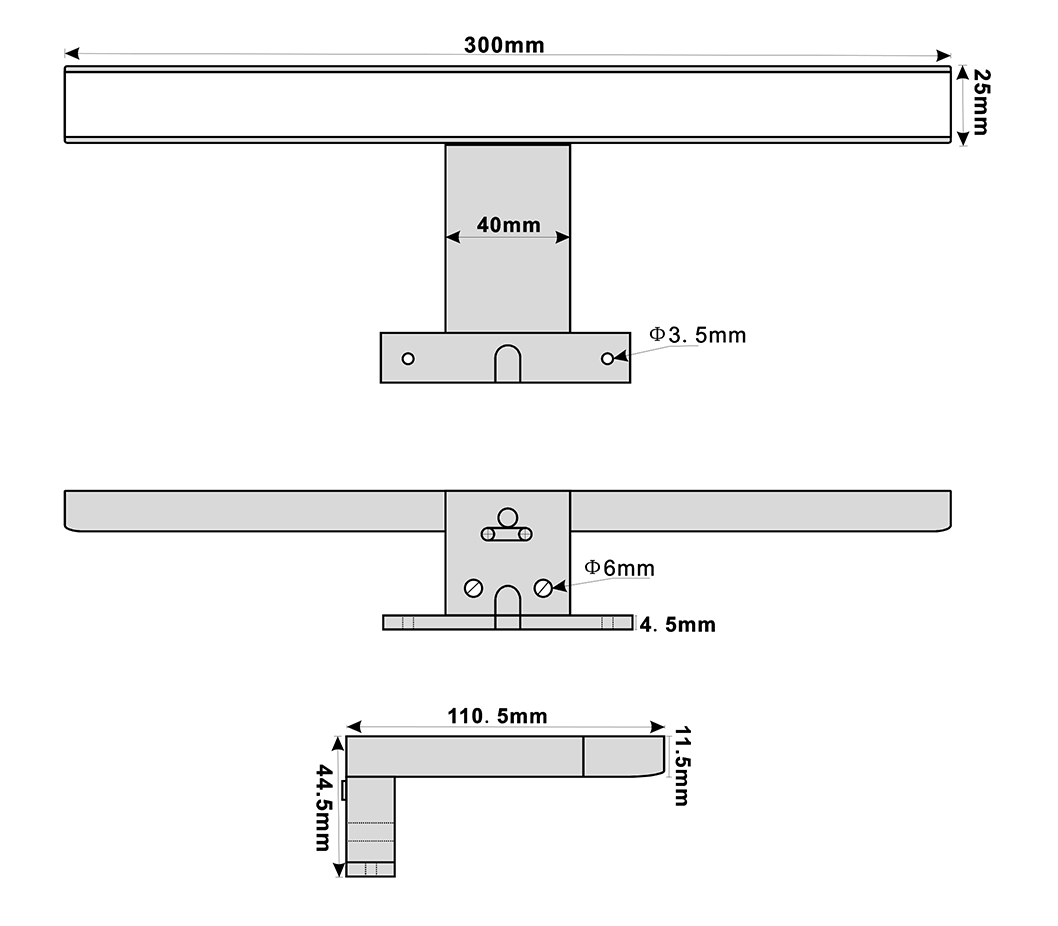 - Largeur de 300 mm : compact et adapté à diverses tailles de miroir