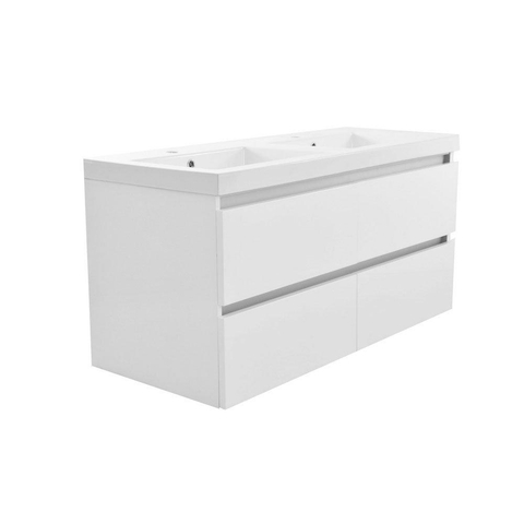 Wiesbaden Vision Meuble sous vasque avec 4 tiroirs 2 découpes 120 x 46 cm blanc brillant