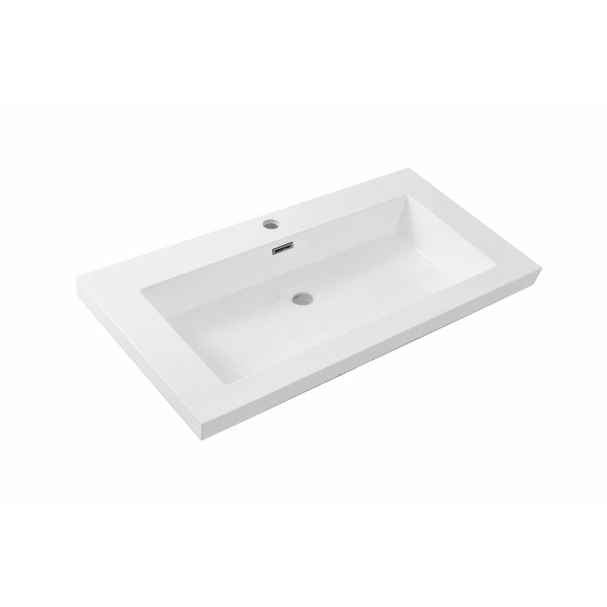 Avec sa finition blanche brillante et ses lignes épurées, ce lavabo s'intègre parfaitement dans un style de salle de bains contemporain. Le marbre synthétique est moulé en une seule pièce, ce qui garantit une apparence sans couture et luxueuse. Cela fait du lavabo non seulement un élément fonctionnel, mais aussi un véritable point focal. Que vous optiez pour un aménagement minimaliste ou un style plus classique, ce lavabo ajoute une touche raffinée qui complète votre salle de bains. De plus, il est compatible avec plusieurs séries de meubles, vous offrant une grande flexibilité dans le choix de votre aménagement.Caractéristiques :