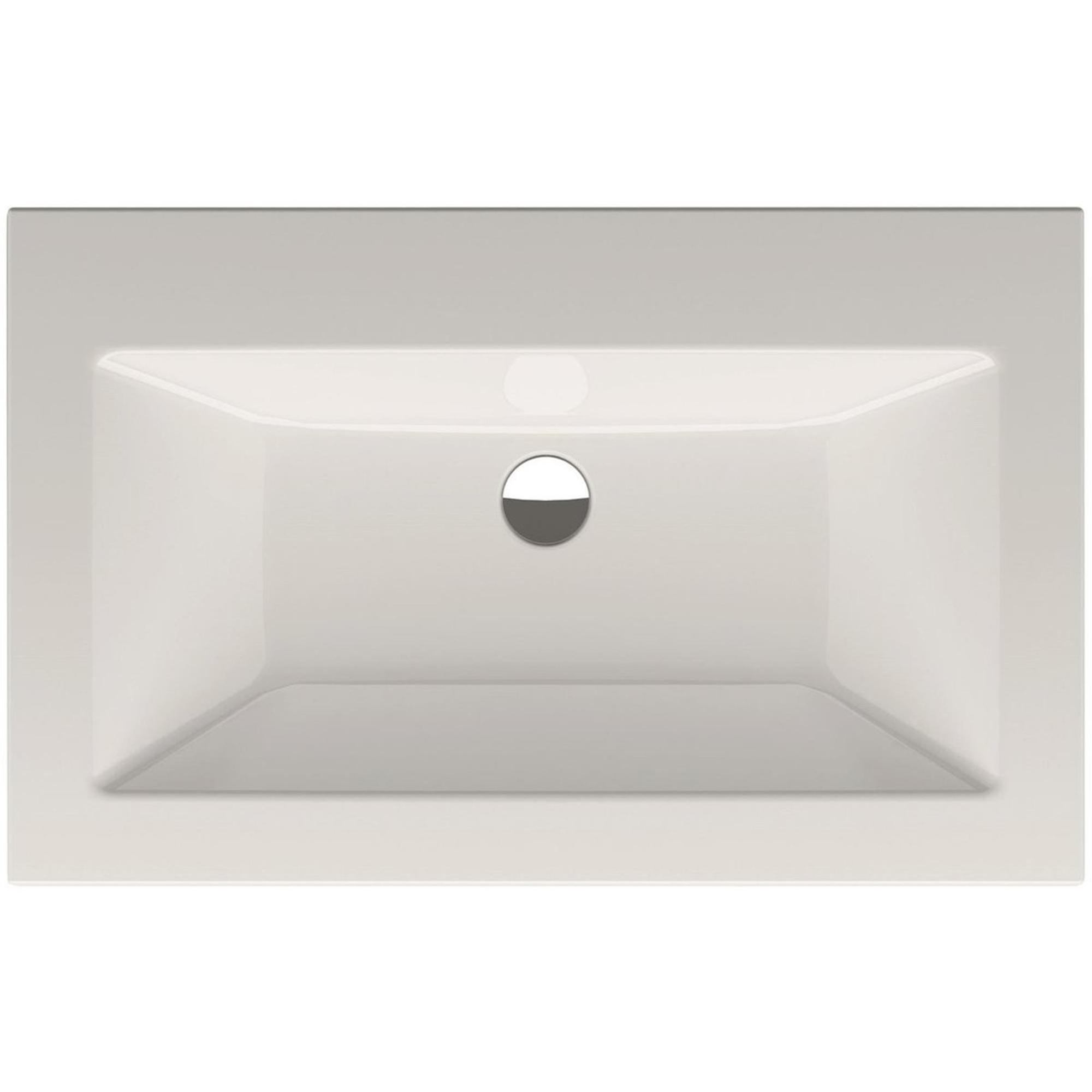 Avec sa forme rectangulaire et son rebord encastré fin, ce lavabo s'intègre parfaitement dans un aménagement de salle de bains moderne et aux lignes droites. La couleur blanche éclatante se marie facilement avec toute teinte de carrelage, du béton ciré au marbre ou à une structure bois chaleureuse. Comme la cuve est joliment intégrée dans le plan, l'ensemble est calme et ordonné, sans bords ni transitions visuelles. Cela ne crée pas seulement une sensation d'hôtel de luxe, mais aide également les petites salles de bains à paraître optiquement plus grandes. La position centrale du trou de robinet sur le plateau arrière préserve la symétrie dans l'espace, ce qui contribue à une apparence équilibrée et réfléchie.