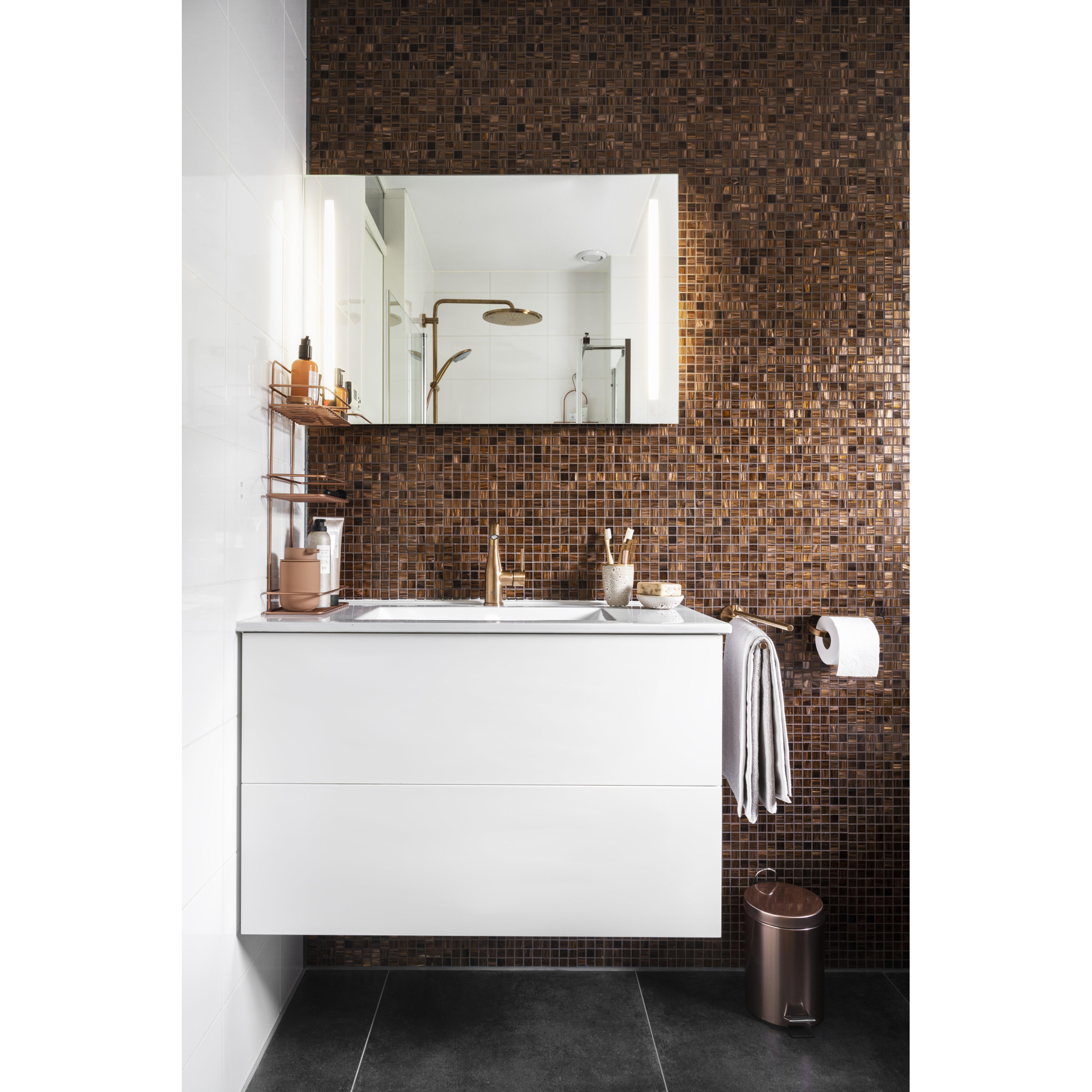 GROHE Essence New Mitigeur de lavabo Sur pied - bec 11,4 cm - taille M - bec haut orientable - vidage - EcoJoy - brushed warm sunset