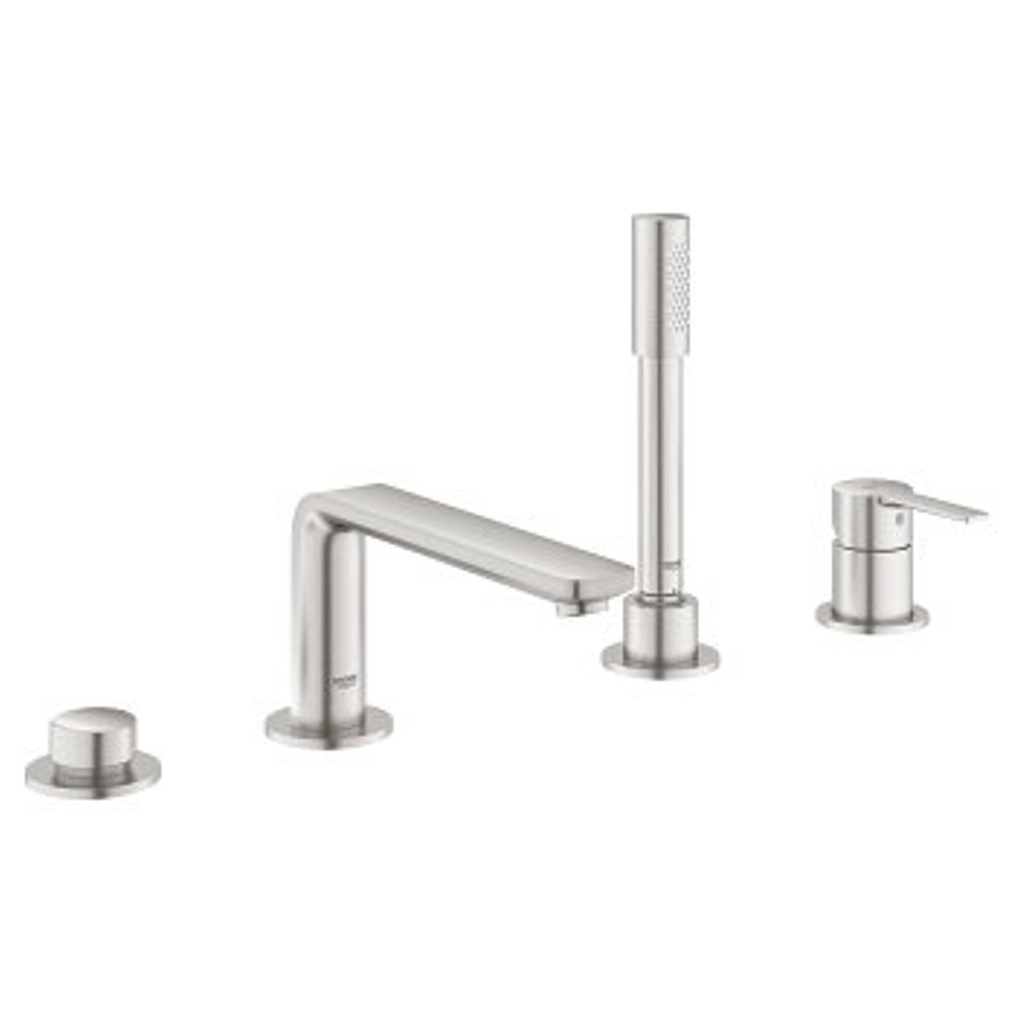 - GROHE Lineare New élément apparent pour combinaison de bord de baignoire 4 trous avec bec de baignoire avec douchette et flexible de douche 200cm supersteel pour une solution complète sur le rebord de la baignoire