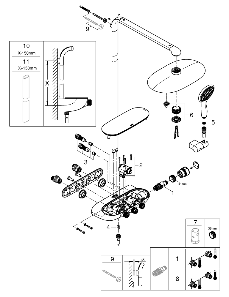 - Ensemble de douche de pluie apparent GROHE Rainshower SmartControl complet avec pomme de douche 36 cm et douchette