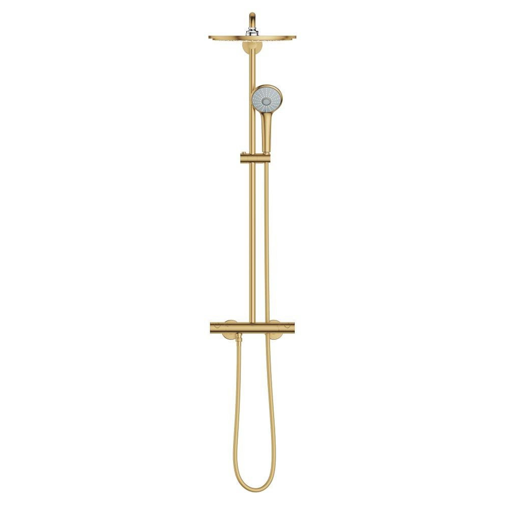 GROHE Euphoria XXL Colonne de douche avec robinet thermostatique et douche de tête Rainshower Cosmo 310 et douchette cool sunrise brossé (or)
