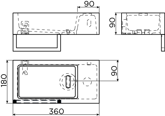 Avec des dimensions de 36x18 cm et une hauteur d’environ 9 cm, ce lave-mains est spécialement conçu pour les espaces où chaque centimètre compte. La forme rectangulaire exploite de manière optimale la largeur disponible, tandis que la profondeur minimale évite de se cogner au lave-mains en entrant ou en sortant. Le trou de robinet à droite permet d’installer facilement un petit mitigeur de lavabo, par exemple un robinet d’eau froide pour les toilettes. Grâce à sa conception intelligente, l’ensemble paraît léger et apaisant, ce qui contribue à une impression d’espace, particulièrement appréciable dans les petites toilettes.
