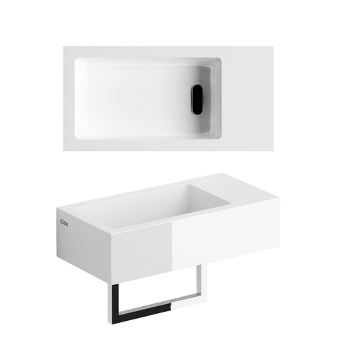 Clou Flush 3 lave-mains 36x18cm trou de robinet à droite avec porte-serviettes Marbre minéral blanc brillant