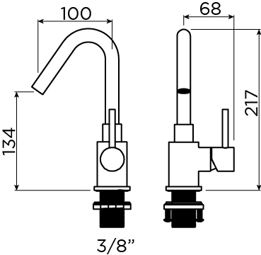 - Mitigeur haut en forme de C, idéal pour plus d’espace de mouvement au-dessus du lavabo