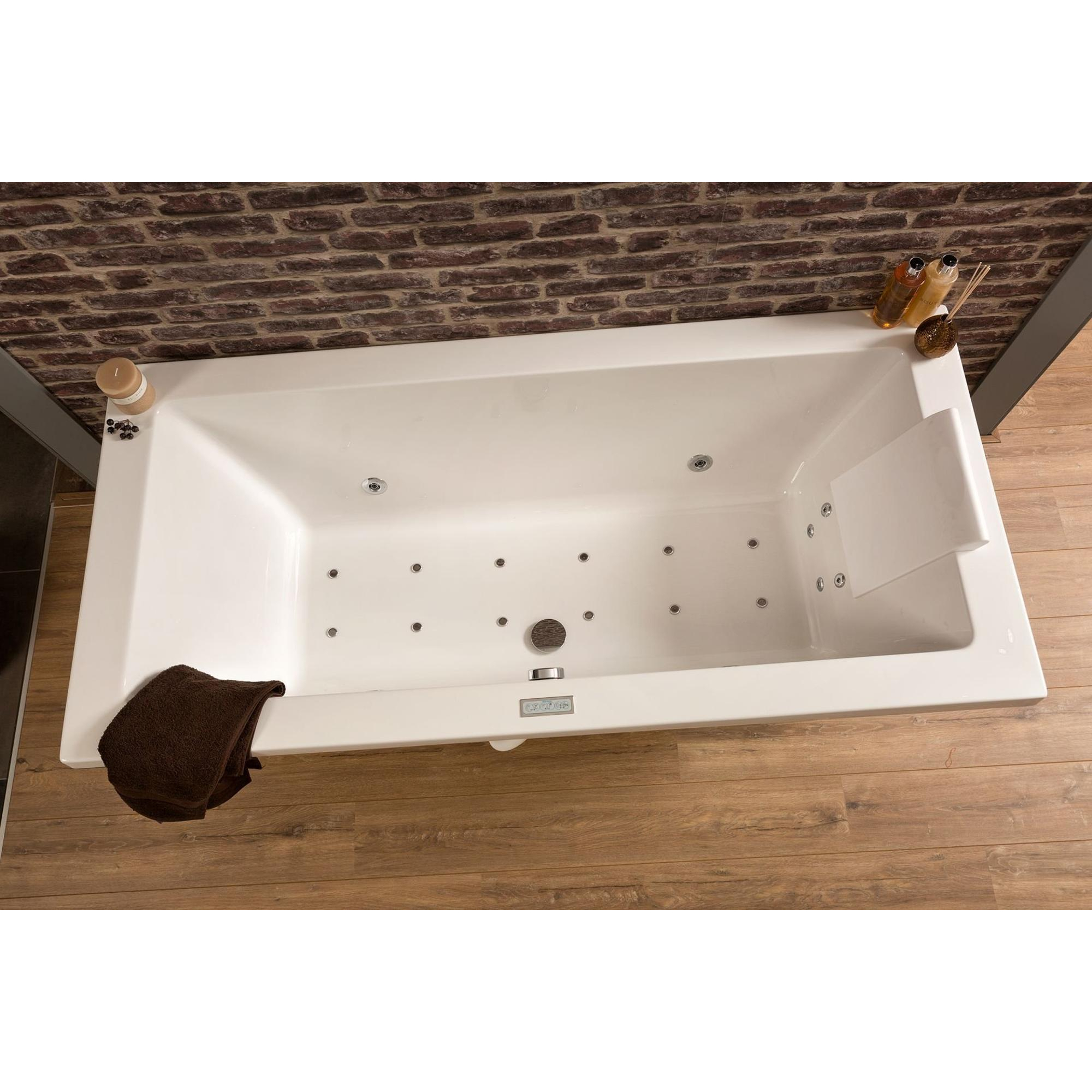 - Bonde et trop-plein centraux : possibilité de s’allonger confortablement des deux côtés sans bonde gênante sous le dos.