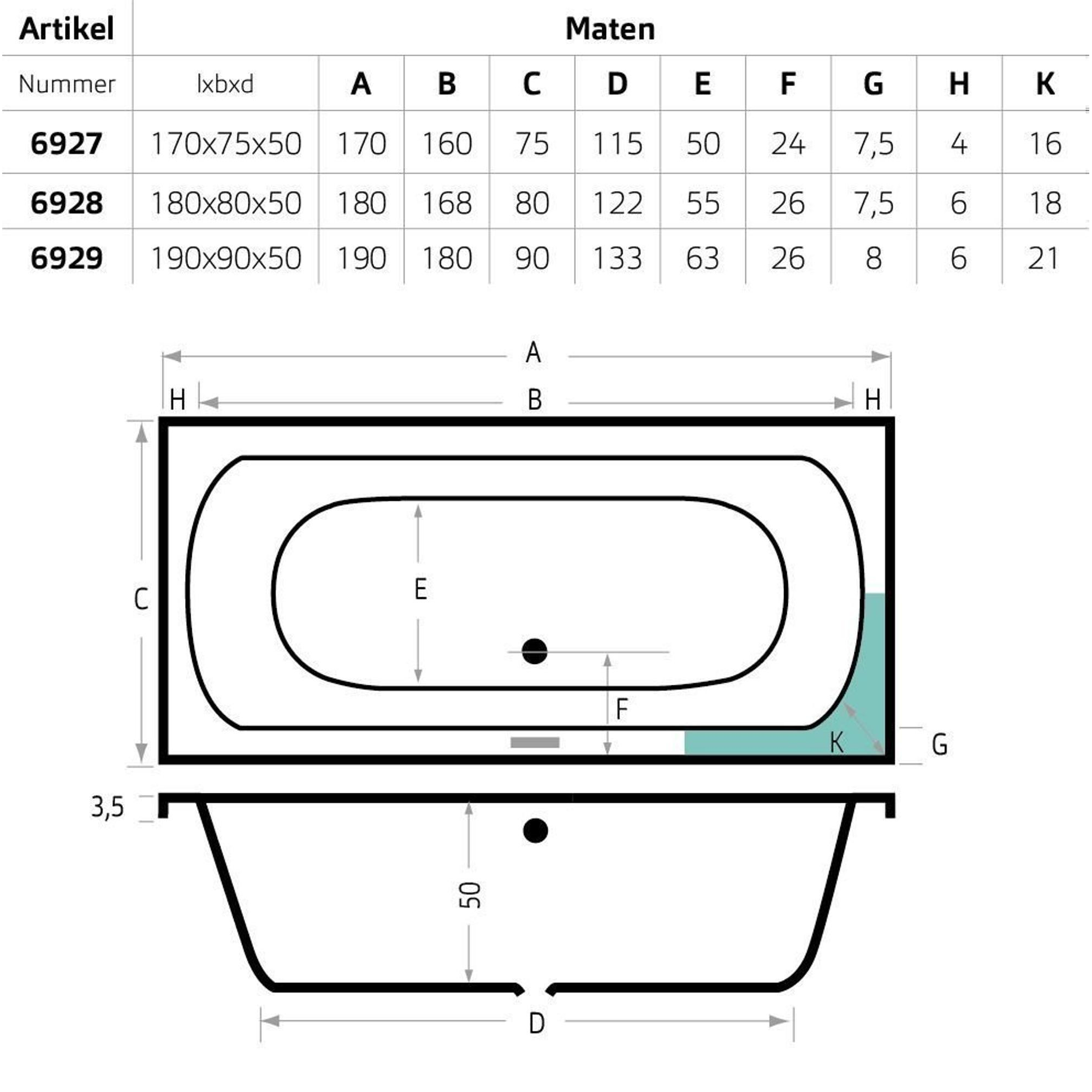 La forme est entièrement conçue pour être confortable en position allongée, que vous profitiez seul d’un long bain ou que vous utilisiez la baignoire à deux. Grâce à la bonde au centre, vous disposez de chaque côté d’une agréable position allongée, idéale si vous prenez un bain avec deux personnes. Les lignes droites à l’extérieur assurent une installation encastrée épurée contre un mur ou dans une niche, tandis que la forme intérieure est douce et ergonomique. La hauteur d’environ 53 cm donne une impression de volume et de profondeur, tout en restant facilement accessible pour l’entrée. Il en résulte une baignoire qui convient aussi bien à un usage quotidien qu’à de longs moments de bien-être, sans faire de concessions sur la facilité d’utilisation ou la sensation d’espace dans la salle de bains.