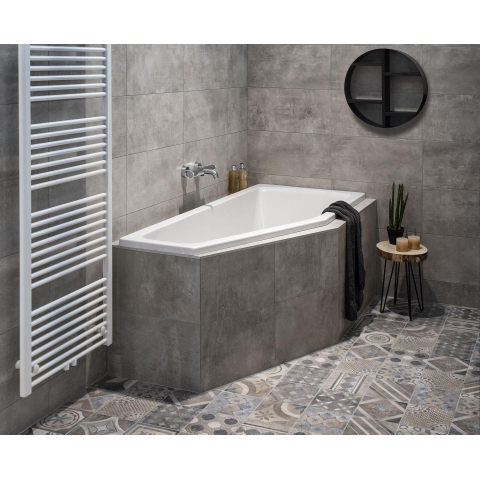 Avec des dimensions de 160x75x48 cm, cette baignoire d'angle est idéale lorsque votre salle de bains n'offre pas de place pour une grande baignoire, mais que vous souhaitez tout de même vous baigner confortablement. La forme asymétrique ingénieuse offre un espace supplémentaire au niveau des épaules et du dos, tout en gardant la baignoire compacte en longueur. Grâce à la version gauche, elle s'intègre parfaitement dans un angle gauche et vous permet d'aménager le reste de l'espace de manière efficace. La bonde centrale n'est pas seulement pratique parce que vous pouvez vous asseoir ou vous allonger confortablement des deux côtés, mais elle évite également que vous ne vous appuyiez sur la bonde. Vous profitez ainsi d'une position détendue, que vous souhaitiez vous allonger de tout votre long ou prendre un bain avec un enfant.