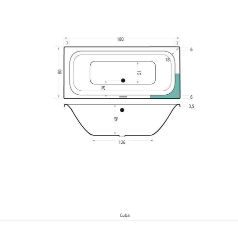 Xenz Cuba Baignoire duo - 180x80x51 - bonde au milieu - acrylique - blanc
