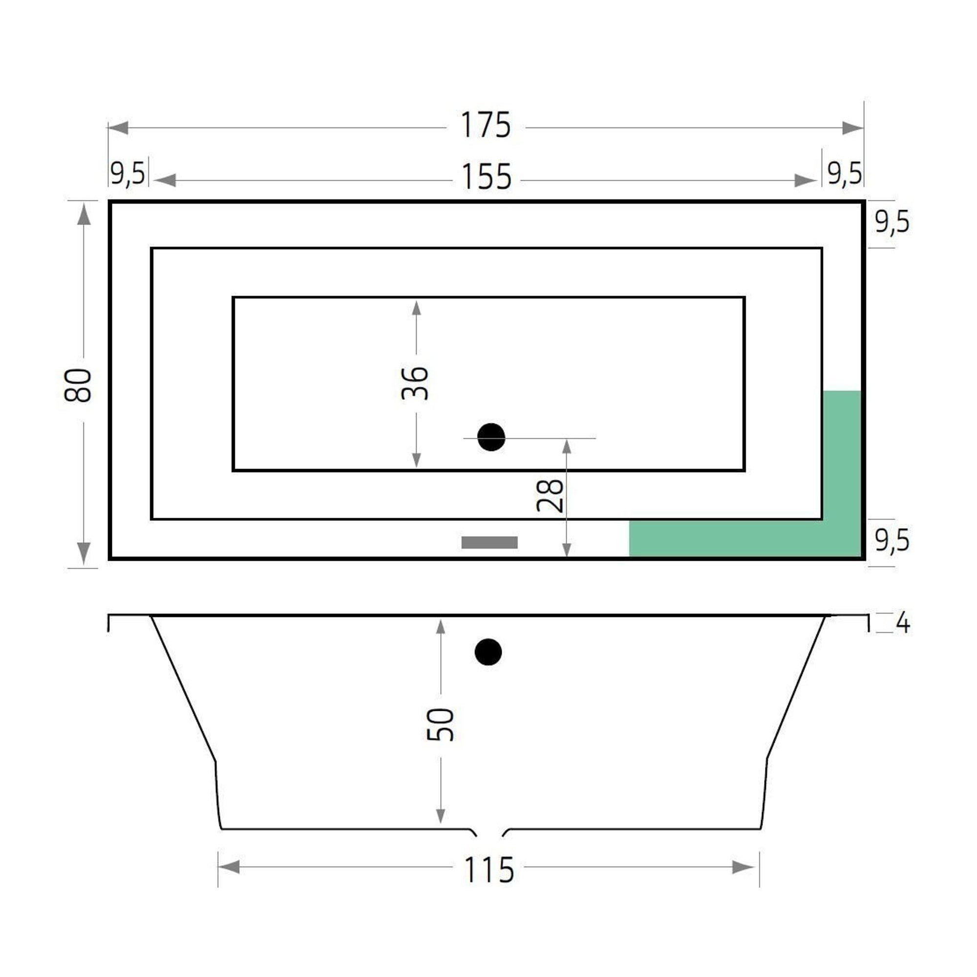 - Grande baignoire duo de 175x80x53 cm, idéale pour une ou deux personnes.