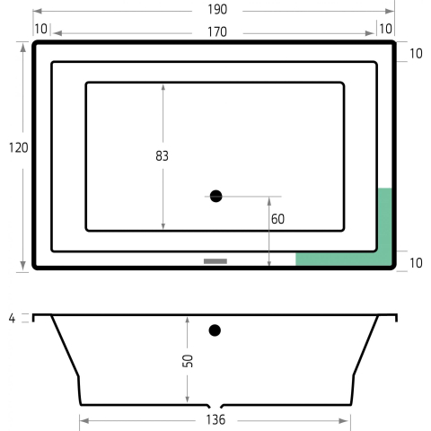 Avec 190x120x53 cm, vous disposez ici d’une baignoire duo qui offre vraiment de l’espace. Les dimensions intérieures généreuses et la position couchée pour deux personnes permettent de se détendre confortablement aussi bien à deux que seul, sans devoir être épaule contre épaule. La forme rectangulaire pratique s’intègre facilement contre un mur ou dans une niche, ce qui vous permet d’utiliser efficacement l’espace disponible. Grâce à la bonde au milieu, vous pouvez vous allonger confortablement des deux côtés, sans être assis sur l’ouverture d’évacuation. Cela rend le confort de couchage symétrique et équitablement réparti pour les deux utilisateurs. Idéal si vous souhaitez apporter une sensation de bien-être à la maison et aménager votre salle de bains comme un spa privé.