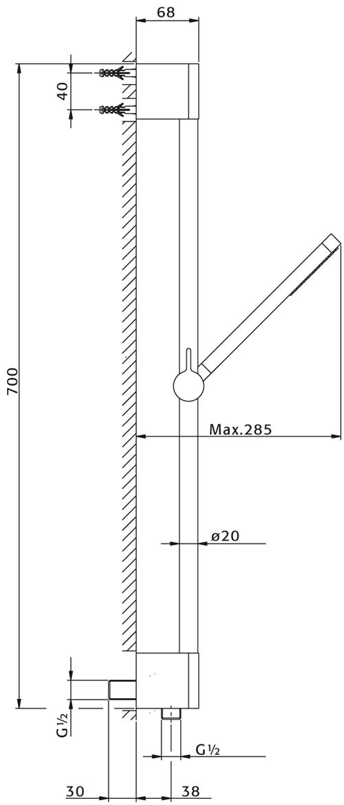 Xenz Pure Ensemble de douche 70cm avec coude mural intégrée chromé brillant