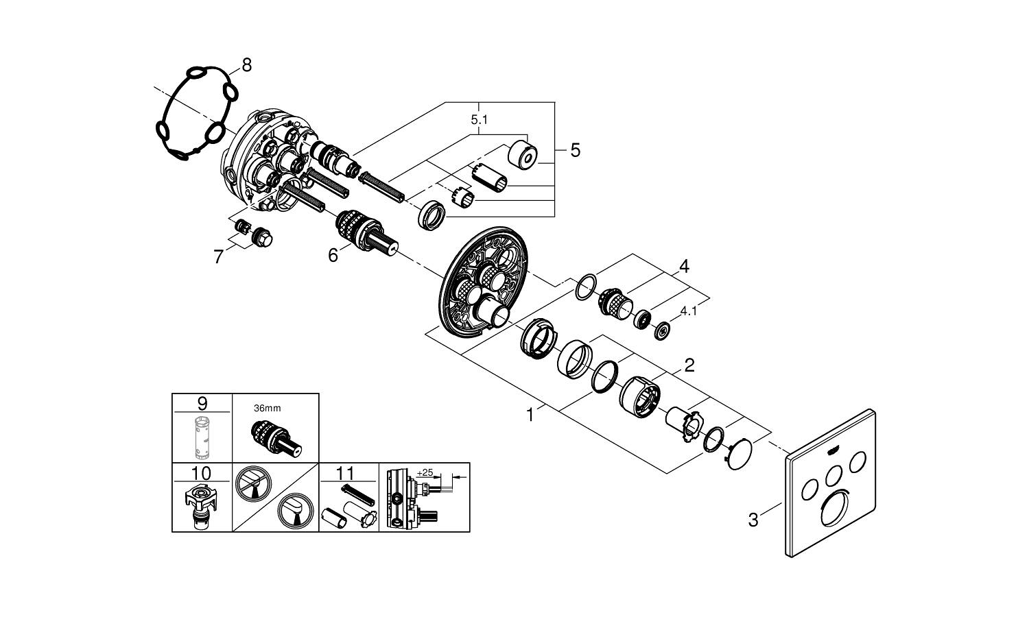 Grohe SmartControl Mitigeur thermostatique encastré - 4 boutons - carré - chrome
