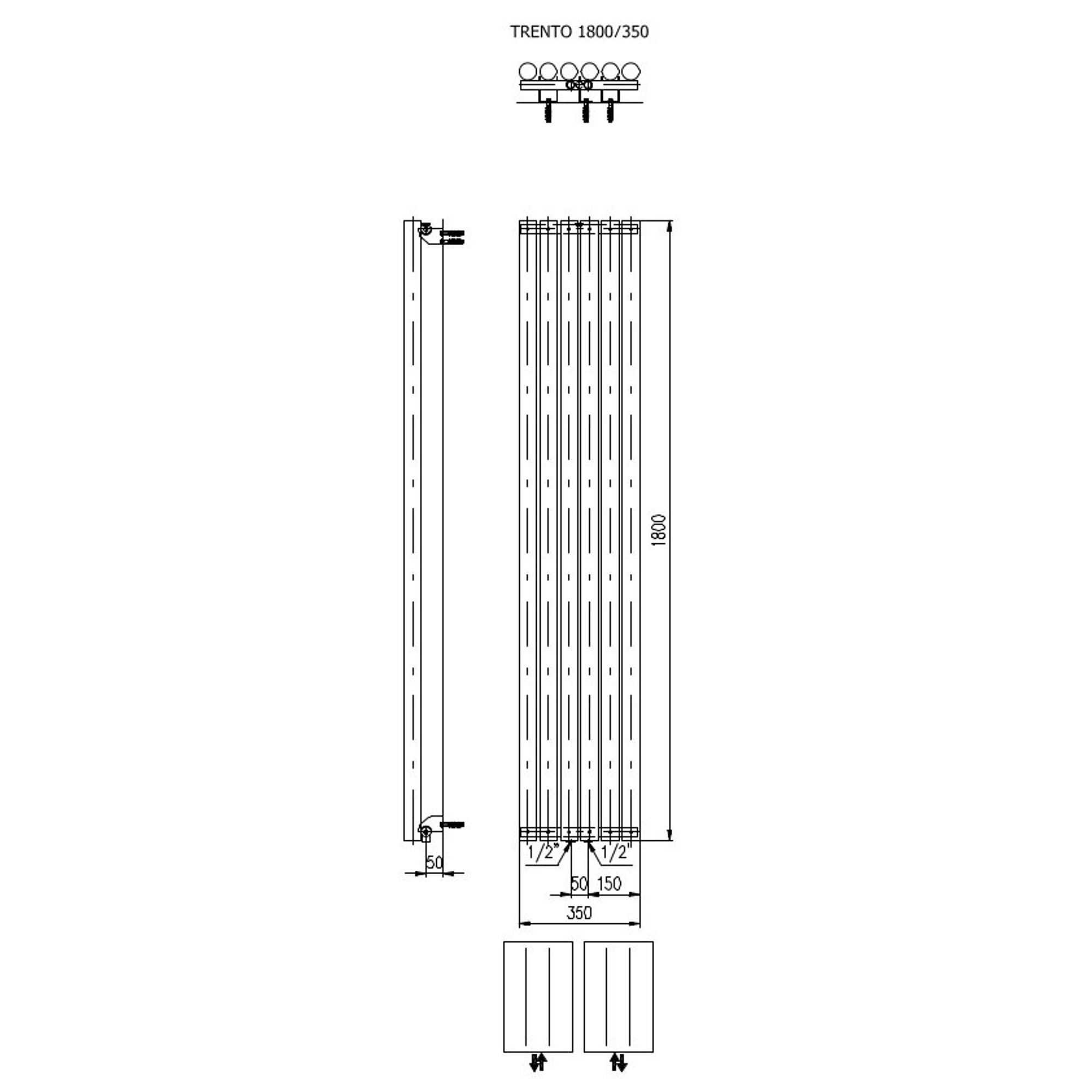 Plieger Trento radiateur design vertical avec raccordement central 1800x350mm 814W blanc (RAL9016)