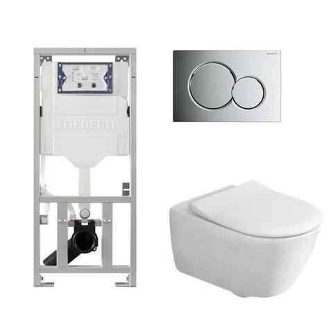 Villeroy & Boch Subway 2.0 kit encastrable avec cuvette suspendue à chasse profonde DirectFlush abattant slimseat plaque de recouvrement chromée brillante