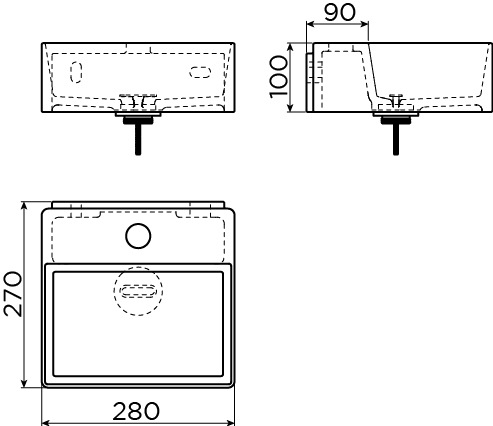 Avec des dimensions de 28x27 cm et une hauteur de 10 cm, vous utilisez très efficacement l’espace disponible dans vos toilettes. Le design rectangulaire subtil ne dépasse pas inutilement, ce qui permet de conserver l’espace de passage et offre un ensemble visuellement apaisé. Le trou de robinet est positionné au centre, afin que vous puissiez installer un joli mitigeur de lave-mains surplombant la cuve et que le jet d’eau tombe de manière optimale au milieu du bassin. Surtout dans les petites toilettes, un lave-mains compact fait une grande différence : l’espace semble moins encombré, vous circulez facilement et vous disposez tout de même d’une surface suffisante pour vous laver les mains confortablement.