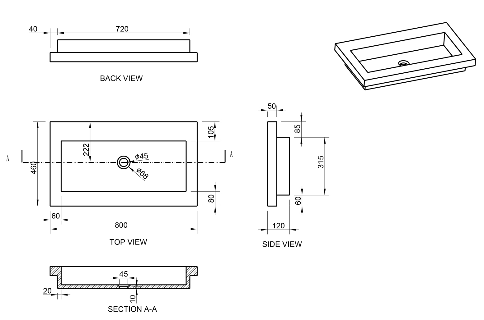 - Dimensions : 80 x 46 x 5 cm – format idéal pour divers meubles de salle de bains