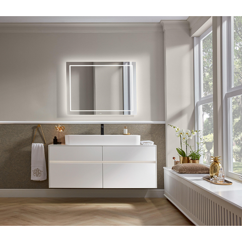 Le design rectangulaire avec des bords de lavabo extrêmement fins donne à votre salle de bains une apparence raffinée, presque flottante. Les dimensions généreuses de 1000 x 470 mm et le large plateau de robinetterie offrent beaucoup d’espace fonctionnel autour du robinet, idéal pour les produits de soin quotidiens ou un bel ensemble d’accessoires. Vous conservez ainsi un ensemble épuré et ordonné, tout en gardant tout à portée de main. La forme épurée avec lignes droites s’harmonise à merveille avec un style de salle de bains moderne, minimaliste ou d’inspiration hôtel de luxe. Vous créez ainsi, avec un seul élément, une affirmation de style marquée, sans faire de compromis sur la fonctionnalité.