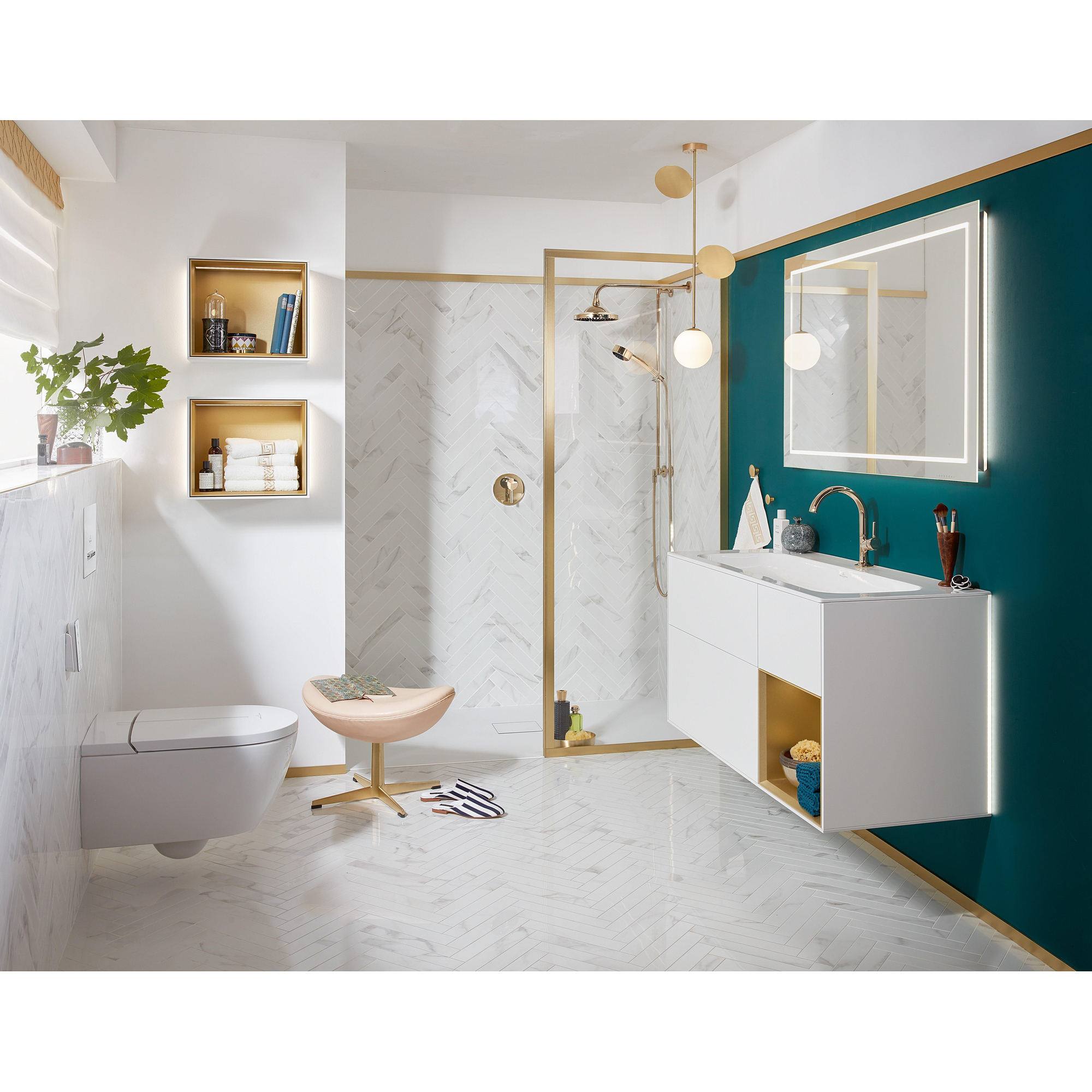 - Grande cuve avec larges zones de dépose sur les côtés pour tous vos indispensables quotidiens de salle de bains.