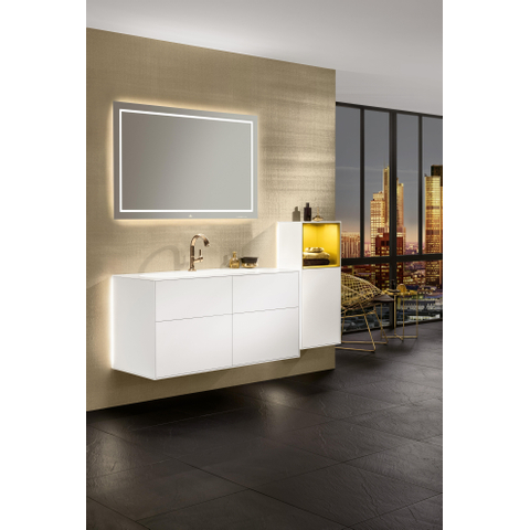 La forme rectangulaire épurée avec des bords extrêmement fins donne immédiatement une allure haut de gamme à votre salle de bains. La conception filigrane est rendue possible par le matériau céramique spécial, ce qui vous permet de bénéficier d’un look élégant sans sacrifier la solidité. Le trop-plein dissimulé et la bonde en céramique plane assurent un ensemble sobre et minimaliste : pas d’ouvertures gênantes, mais une surface continue et apaisante. Cela s’intègre parfaitement dans un style de salle de bains moderne, du minimaliste au luxe hôtelier, et se combine en outre sans effort avec un meuble de salle de bains élégant et un robinet fin.