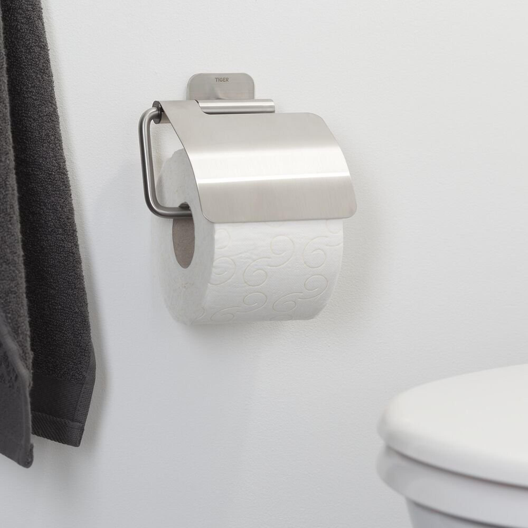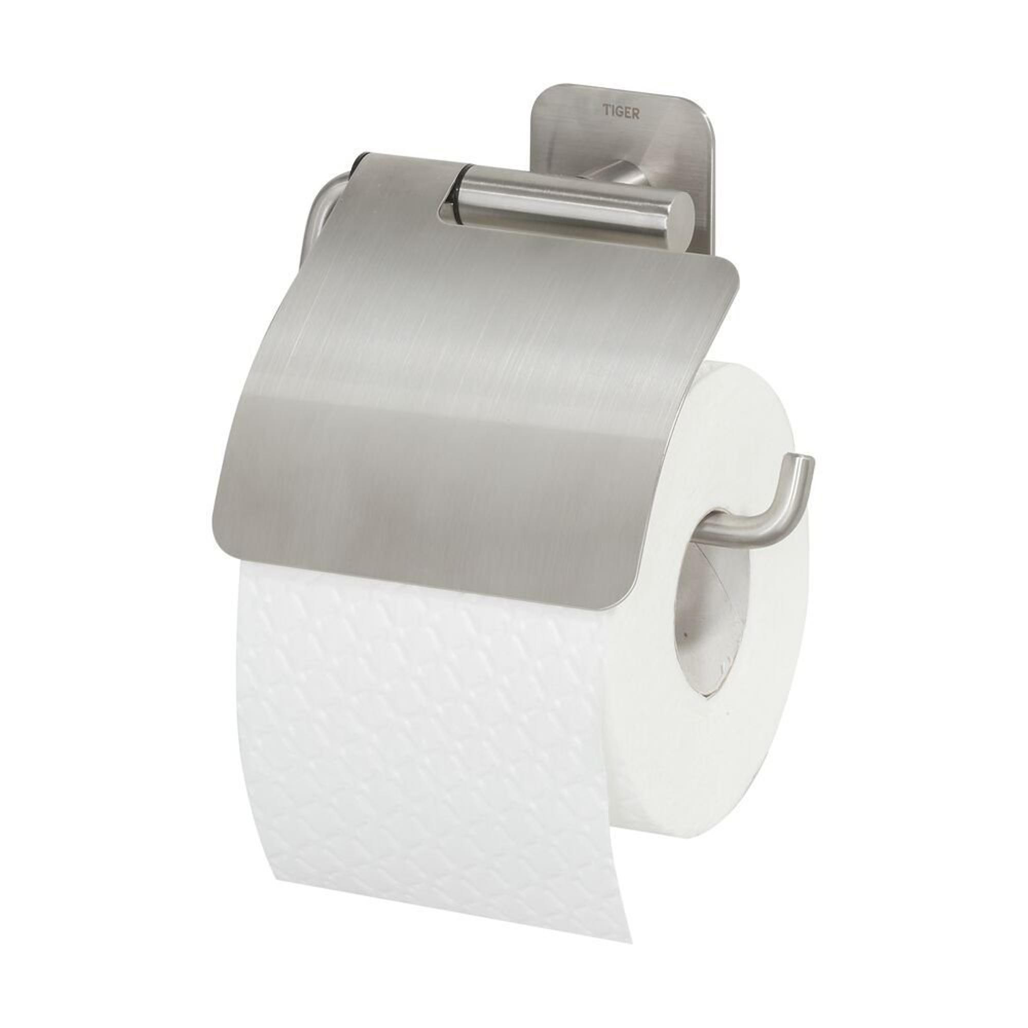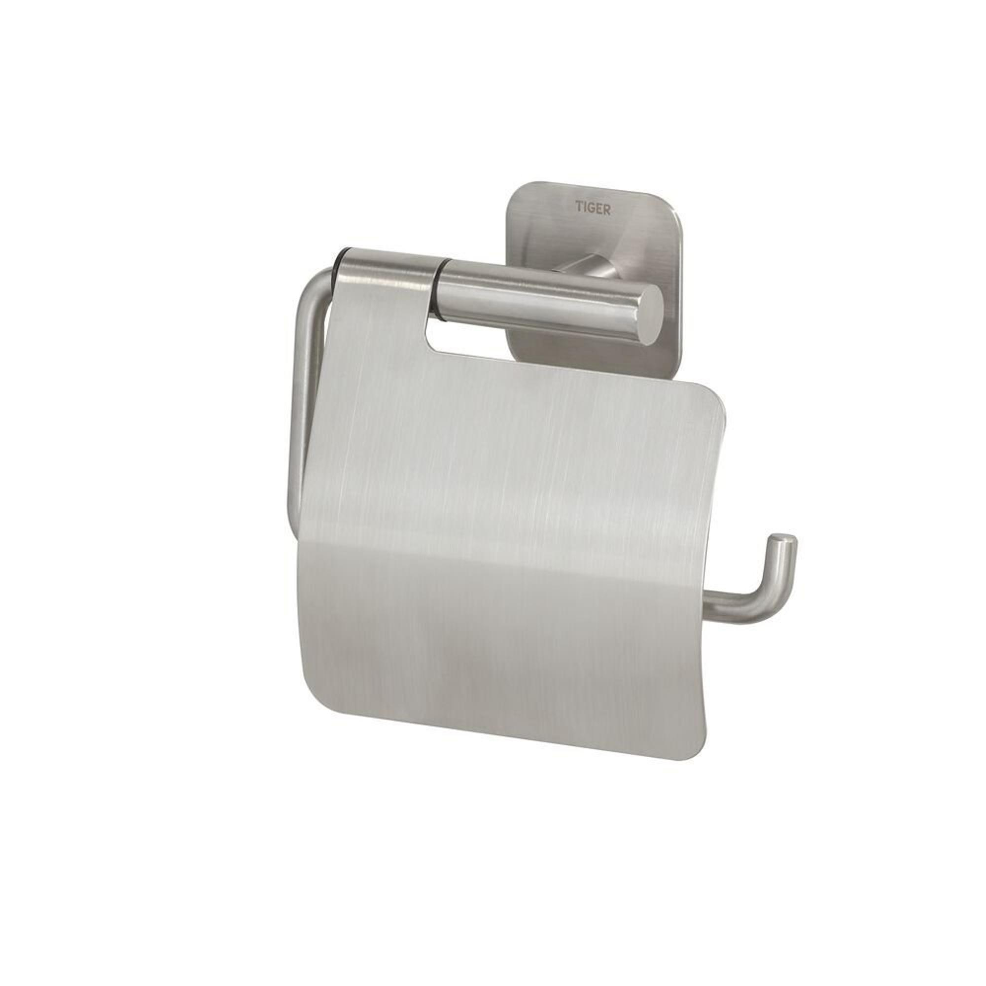 Tiger Colar Porte-rouleau de papier toilette - avec clapet - auto-adhésif - inox brossé